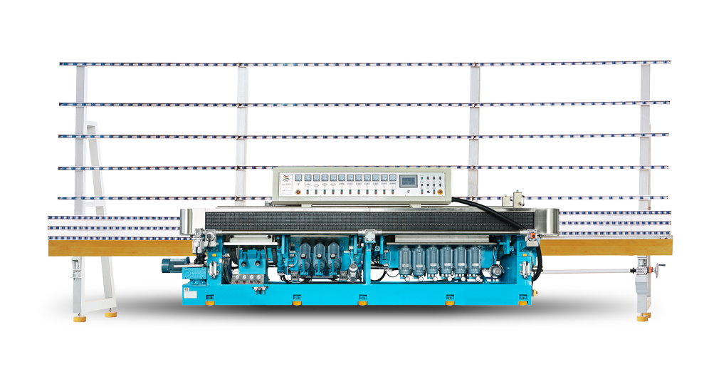 該機采用PLC控制,倒角及底邊一次性拋光,兩套前倒角擺座分別可以在0°~45°及0°~60°間自由擺動,并且在加工直邊、多棱邊、斜邊時可以一次成型,在觸摸顯示屏上顯示角度及倒角寬度,自動磨削時可較準確的調整和設置前倒角的各項參數。