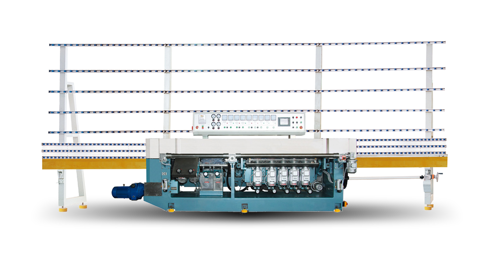 該機采用PLC控制,主要用于玻璃底邊及前大倒角磨邊及拋光,其中前面五個馬達角度在0°~45°間任意可調,并在觸摸顯示屏上顯示角度及倒角寬度,自動磨削時可較準確的調整和設置前倒角的各項參數。