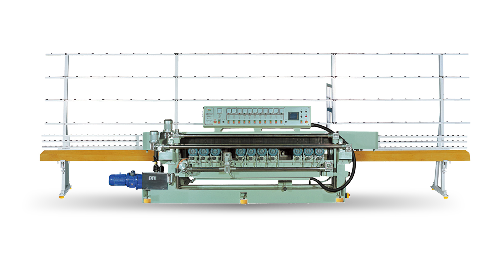 該機(jī)采用短節(jié)巨大滾子鏈條傳動壓板,磨頭采用ABB電機(jī)精度高、能耗小、穩(wěn)定性強(qiáng),采用PLC精確控制斜邊的寬度,自動化程度高,并采用同步帶輸送。主要用于磨削速度的斜邊,斜邊的多種組合。精磨和拋光以及底邊磨削一次加工完成。具有加工效率高、質(zhì)量好、性能穩(wěn)定、操作簡便及損耗低等特點。